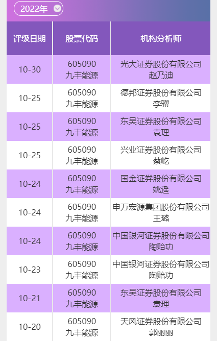 在一众分析师之中,有哪一些分析师值得重视呢?接下来投研君为大家揭晓。海通证券的邓勇分析师在公司发布2022中报预告后,于7月13日为公司作出点评:公司产品价格处于景气高位。未来销量将持续增长。我们预计九丰能源2022~2024年EPS分别为1.76、1.80、1.84元。参考可比公司估值水平,给予其2022年13-15倍PE,对应合理价值区间为22.88-26.40元,维持“优于大市”投资评级。当前,邓勇分析师位居分析师评价(公用事业行业)行情类排行榜第23名,投研君曾在华锦股份和新奥股份两期提过邓勇分析师,其在7月的石油石化行业行情类排行榜曾取得第17名的成绩,在8月和9月更在公用事业行业行情类排行榜连续两月勇夺冠军。邓勇分析师从2021年便开始关注九丰能源,是第三位为公司作出点评的分析师。