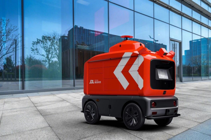 京东的无人物流车是典型的低速L4级自动驾驶场景——消费者下单后,自动匹配最近门店,再由无人智能快递车配送。