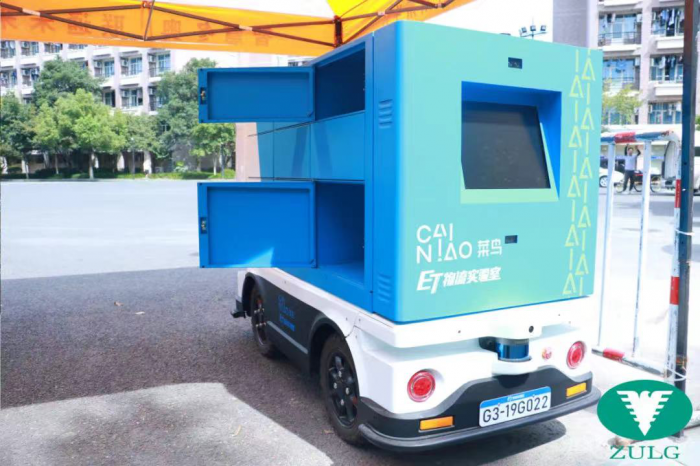 在浙大紫金港校区宿舍区,无人快递车小G,从早上9点运行到晚上6点,每天运送八个趟次。