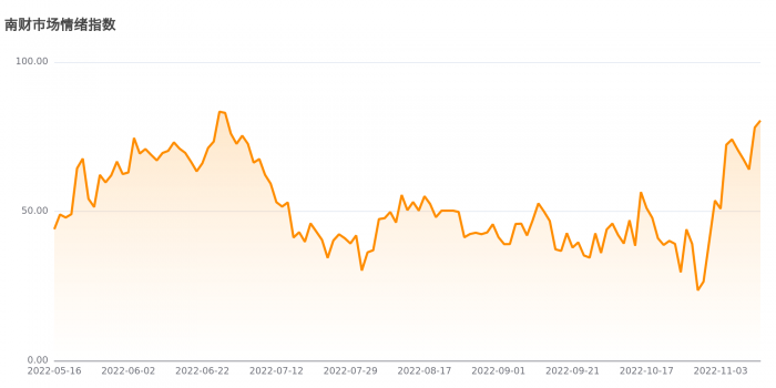 今日南财市场情绪指数为80.4,较前一交易日78.1上涨,市场投资热度提升。