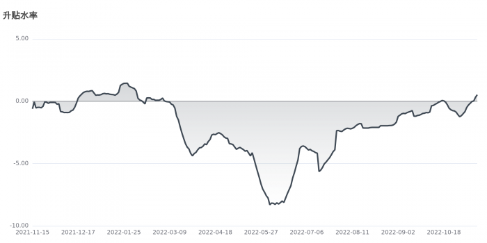 今日该指标值为0.52%,目前该指标处于近一年较高区间,说明投资者认为当前A股市场相对较强。反映期货市场投资者对市场的看法,该指标越高说明投资者认为当前市场较强,越低则说明认为市场相对较弱,因而与上证指数正相关。