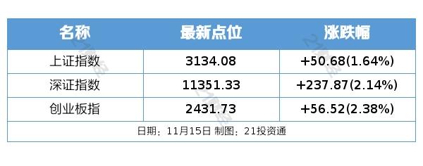昨日A股三大指数午后持续走高,截至收盘,沪指涨1.64%,深成指涨2.14%,创业板指涨2.38%,沪深两市全天成交额10586亿元。两市超4200只个股上涨。