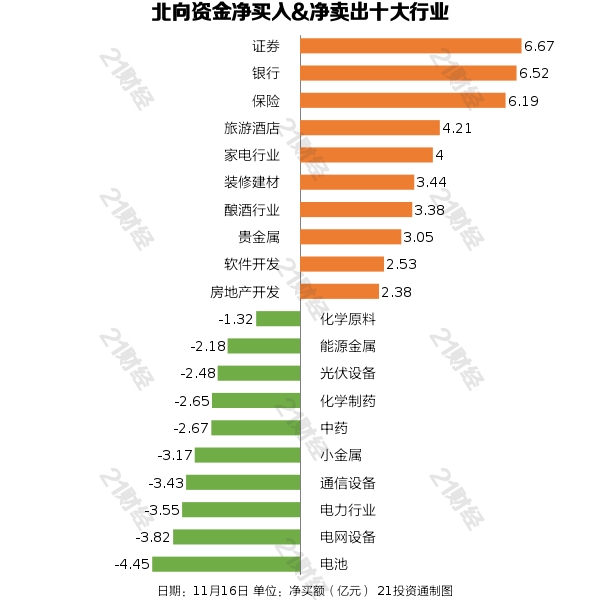 从净买入金额来看,北向资金增持了36个行业,其中证券居首,净买入金额达6.67亿元,其次是银行行业,净买入6.52亿元。
