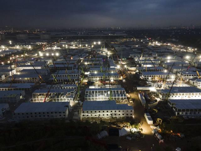 11月21日晚,广州南沙健康驿站施工现场,灯火通明,又将是一个不眠夜。