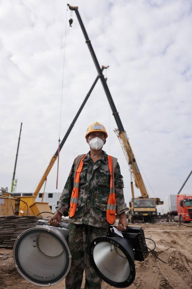 电工兰兴春来自湖南,主要负责临时照明工程安装,白天调整线路,傍晚安装电灯,晚上则反复巡查亮灯是否正常。“现在工期紧,晚上也要施工,做好照明保障才能让工友高效和安全施工。”他叮嘱自己一定要做好每一个细节。