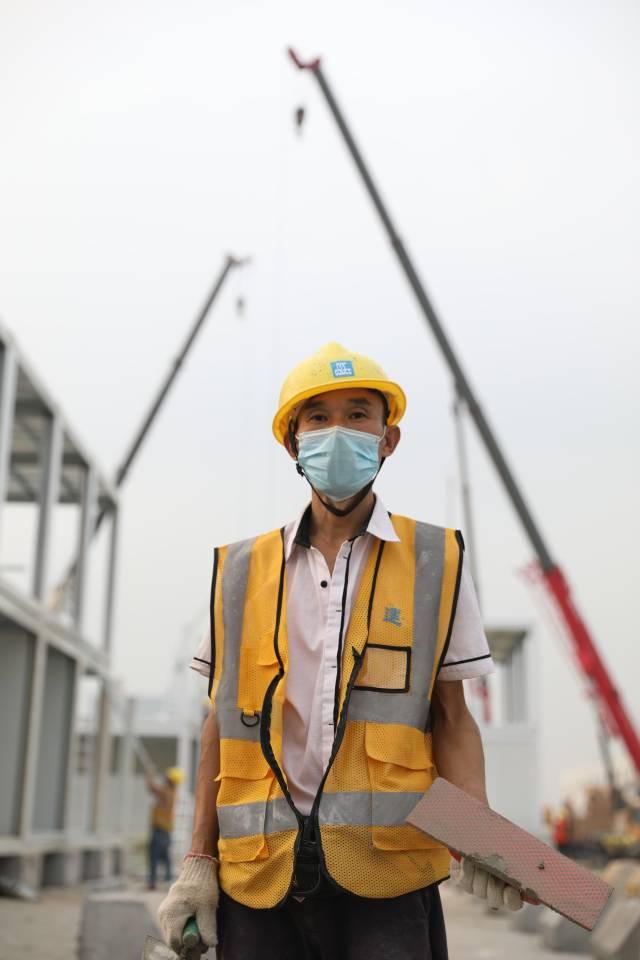安装工 文国栋 来自湖南 我在广州南沙“健康驿站”安装板房,1小时安装30根立柱。