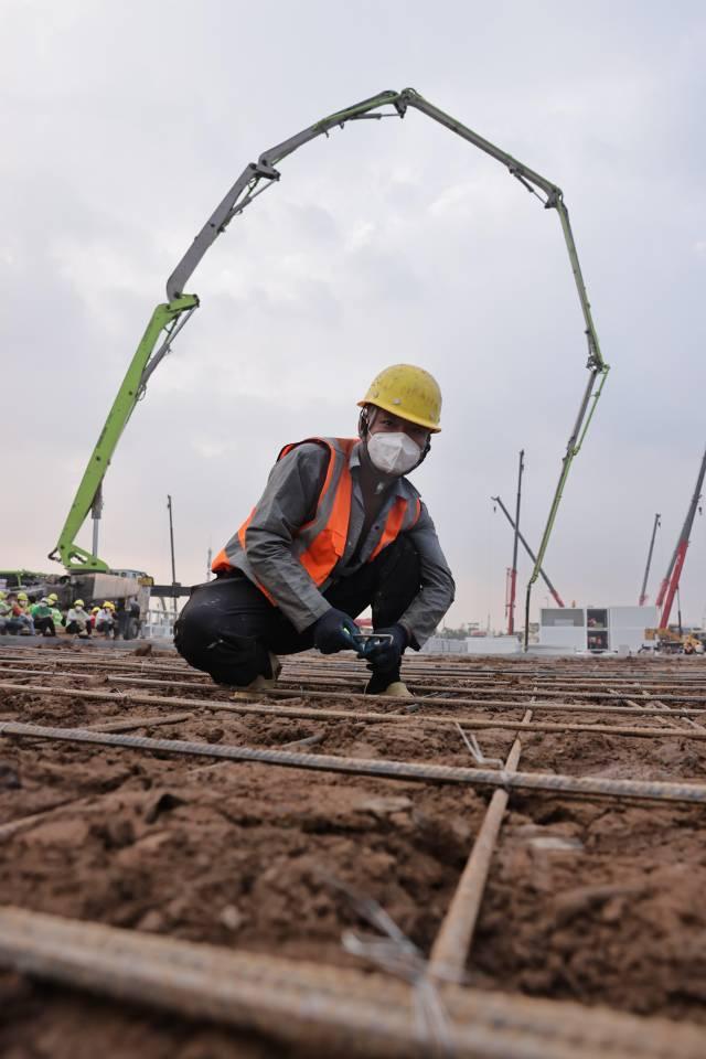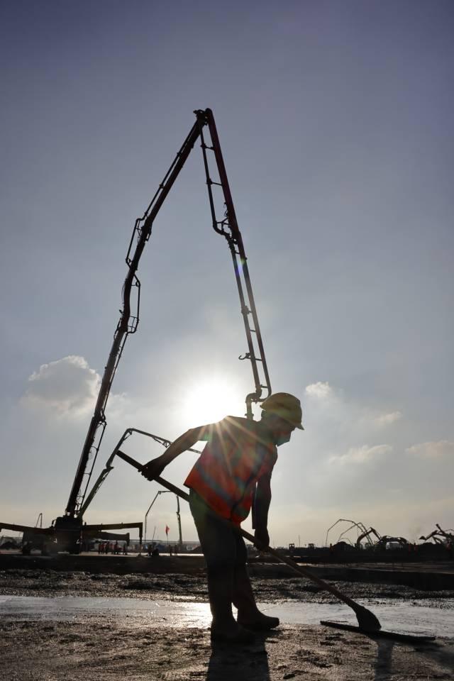 泥水工王健来自重庆,已经连续工作了十几个小时,眼里有掩盖不住的倦色,依然一丝不苟地找平地基。“建好了我们就能休息了,辛苦也值!”他憨然一笑。