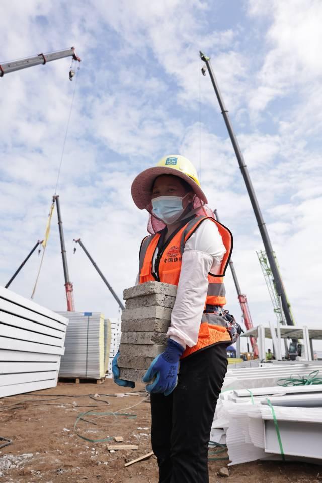 来自云南的杨启英,是工地上名副其实的“搬砖人”,手掌有些发红了,依旧在心里催自己再快一点。“搬砖这事比较小,但也是为抗疫出一份力了。”