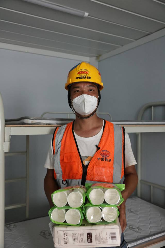 安装工 朱添明 来自湖南 我在广州南沙健康驿站布置隔离病房,1小时完成一间。
