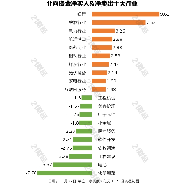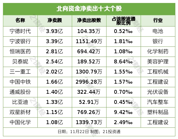 据21投资通智能监测,11月22日,北向资金净卖出7.59亿元,其中沪股通净买入9.37亿元,深股通净卖出16.96亿元。