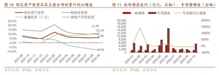 招商证券指出,今年基础建设投资的逆周期调节作用持续被强调。在专项债前置发行的背景下,5000多亿专项债结存限额被启用,补充基建投资缺口的政策性金融工具持续推出,1-9月广义基建累计投资增速为11.2%。预计全年基建投资累计增速有望超过10%。