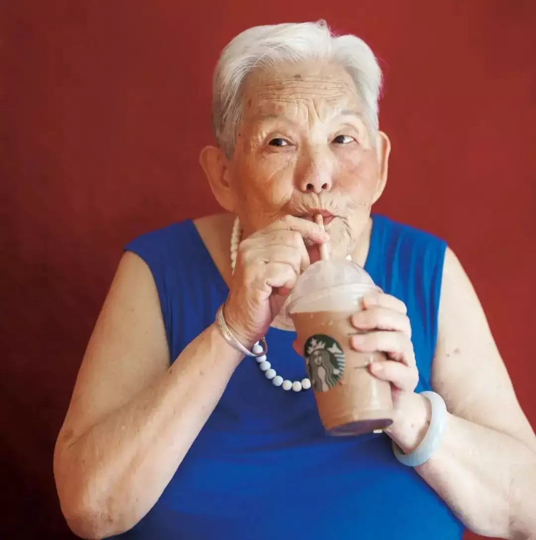夏洛特开心镜头下,爱喝咖啡的姥姥