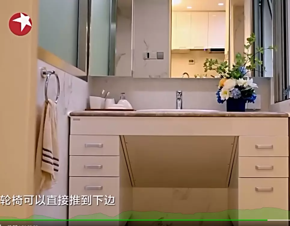 针对需要用轮椅的老人,洗菜池及洗手台等地方,都要预留轮椅的进深。门洞宽度也会按照轮椅的宽度进行改造,同时保证每个房间有足够的轮椅回转空间。