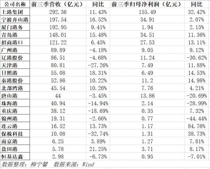 但不少港口公司面临着前三季度营收和利润的下跌。