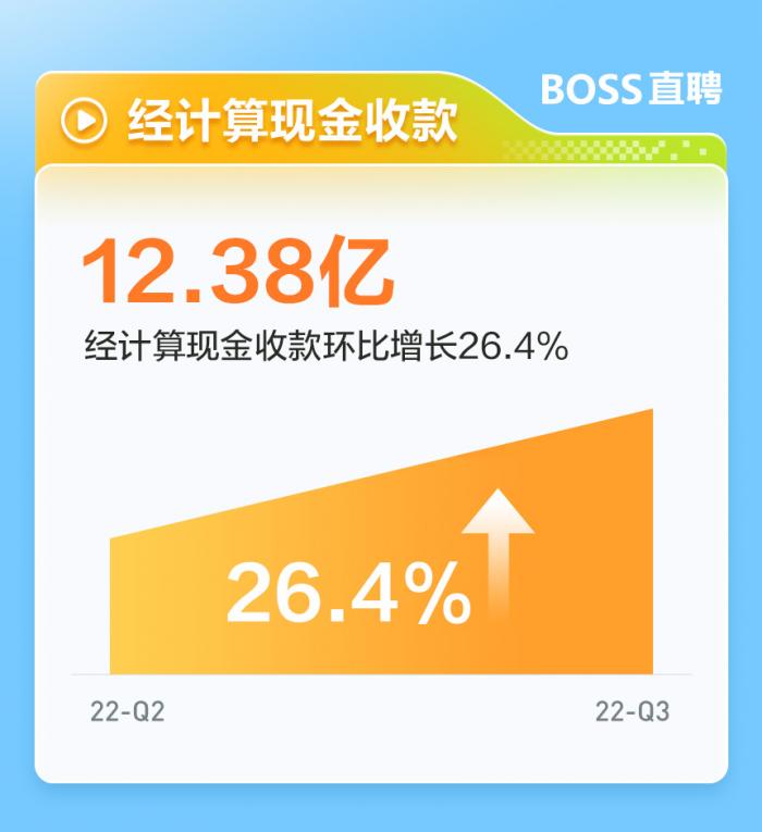 求职招聘市场的回暖与用户增长为BOSS直聘业务恢复提供了有效支撑。在第三季度,BOSS直聘的经计算现金收款达到12.38亿元,环比增长26.4%;经营现金流达到3.67亿元。