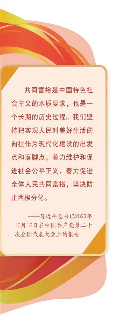 党的二十大报告对扎实推进共同富裕作出一系列重要部署,提出“健全基本公共服务体系,提高公共服务水平,增强均衡性和可及性”“坚持多劳多得,鼓励勤劳致富,促进机会公平,增加低收入者收入,扩大中等收入群体”,这些都为推进共同富裕指明了方向。