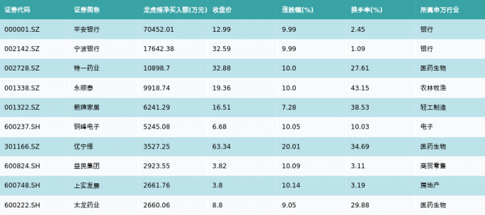 11月29日,龙虎榜营业部净买入额前10详情见下表: