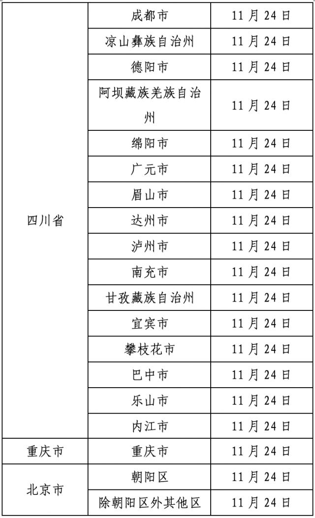 表2 外省各地市
