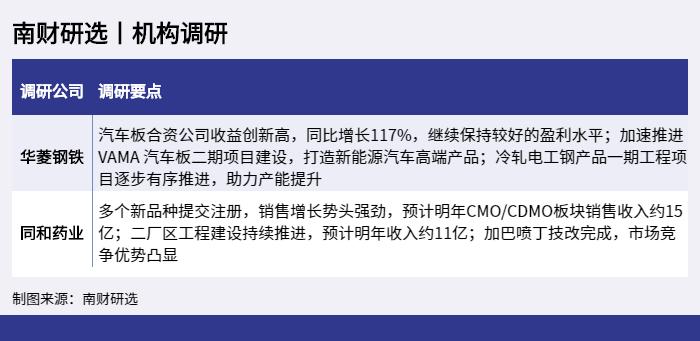 华菱钢铁:汽车板合资公司收益创新高,同比增长117%,继续保持较好的盈利水平;加速推进VAMA 汽车板二期项目建设,打造新能源汽车高端产品;冷轧电工钢产品一期工程项目逐步有序推进,助力产能提升