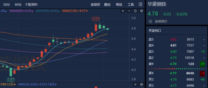 据南财金融终端显示,华菱钢铁一个多月来股价涨超20%。