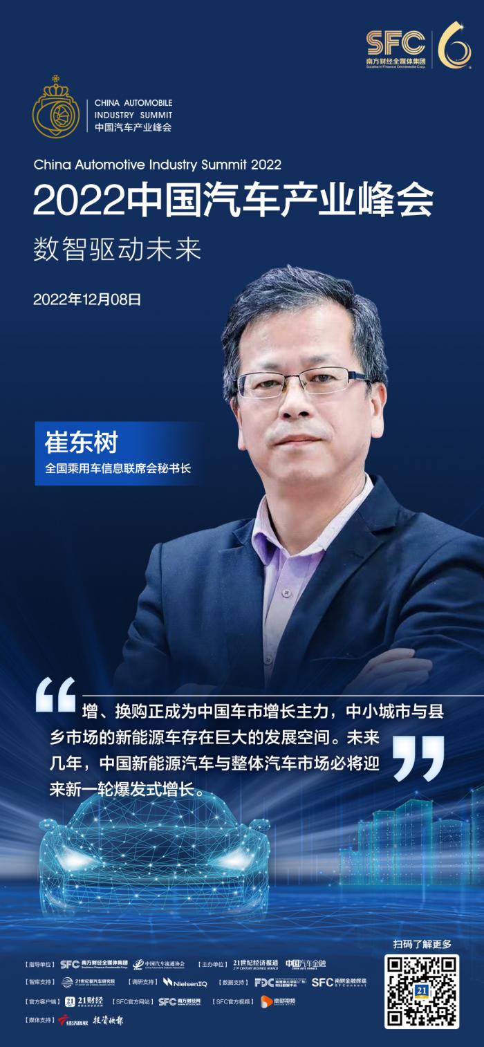 12月8日,由21世纪经济报道、中国汽车金融主办,21世纪新汽车研究院提供智库支持的2022中国汽车产业峰会正式举行。在上午以“新消费 新金融”为主题的2022中国汽车金融年会上,全国乘用车信息联席会秘书长崔东树从当前乘用车市场的运行情况、区域市场的乘用车需求以及未来乘用车发展趋势三个方面,对2022年全国乘用车产销情况和区域潜能进行了分析和预测。