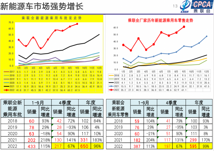 乘联会数据显示,今年10月国内新能源乘用车零售销量达到55.6万辆,同比增长75.2%,零售渗透率30.2%,较2021年10月18.5%的渗透率提升11个百分点;1-10月新能源乘用车国内零售443.2万辆,同比增长107.5%。