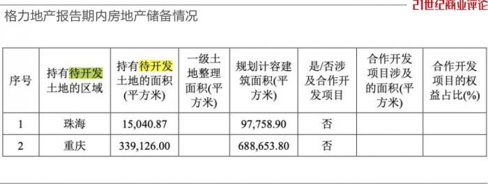 截至2021年末,格力地产的总规划计容建筑面积为78.64万平方米,同比下降22.65%,且仅局限在珠海、重庆两地。