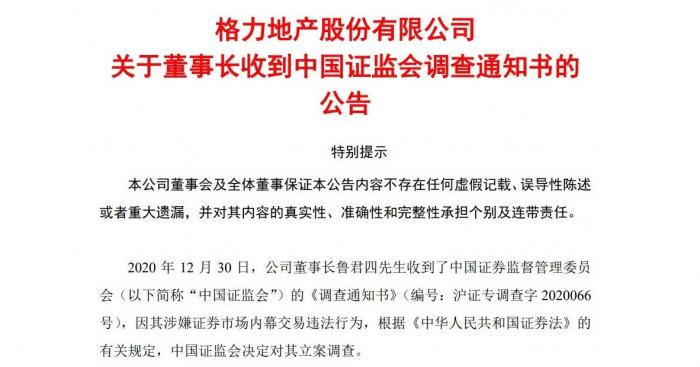 在大股东推动下,项目进展迅速。不料,2020年12月,格力地产原董事长鲁君四因“涉嫌证券市场内幕交易”,被立案调查,对珠海免税的收购重组也由此暂停。