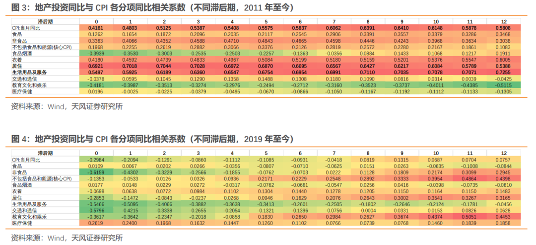 数理测算,2011年以来地产投资与CPI同比相关系数在0.5左右,但2019年以来地产投资与CPI相关性也明显减弱。