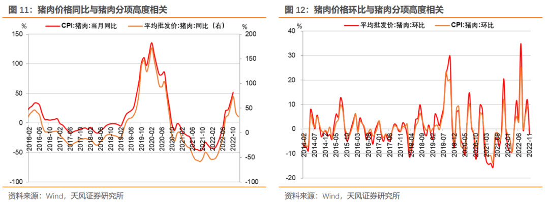 因此,自上而下角度从需求侧看2023年CPI走势,我们依然强调内因看地产,同时注重猪周期影响。考虑到地产投资可能低位筑底、猪周期回落,预计明年CPI总体压力可控。但确实需要特别注意地产超预期的问题。