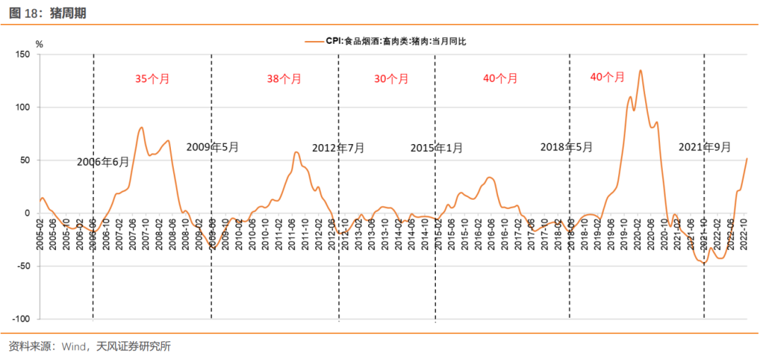 总结而言,对于CPI,经济决定高度,货币决定走势,同时需要关注猪周期的影响。展望2023,需要进一步观察广义货币扩张情况,关注地产是否会超预期,以及猪周期本身的形态变化,自上而下目前看CPI压力可控。