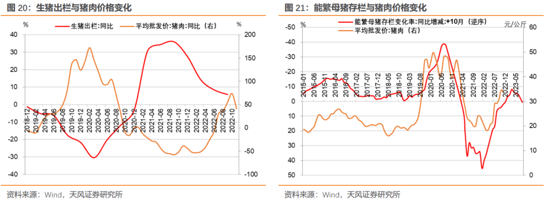 按照养殖周期,能繁母猪存栏数据应当领先猪肉价格变化约10个月,与上文的猪肉养殖周期相对应。