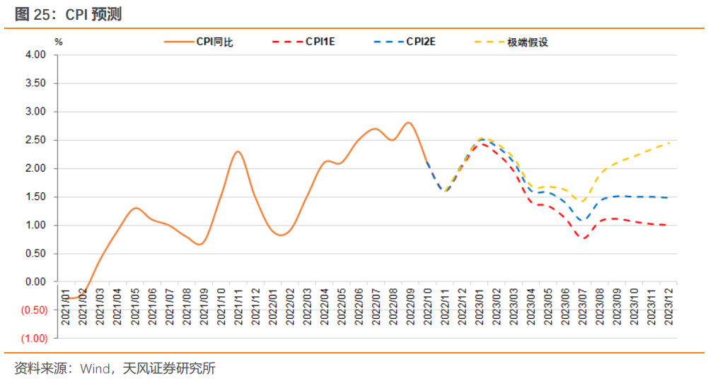 (3)极端情形下,明年地产投资弱回升,猪周期回落慢于预期(年底回落至30元/公斤),国内消费强复苏,且货币政策维持宽松。