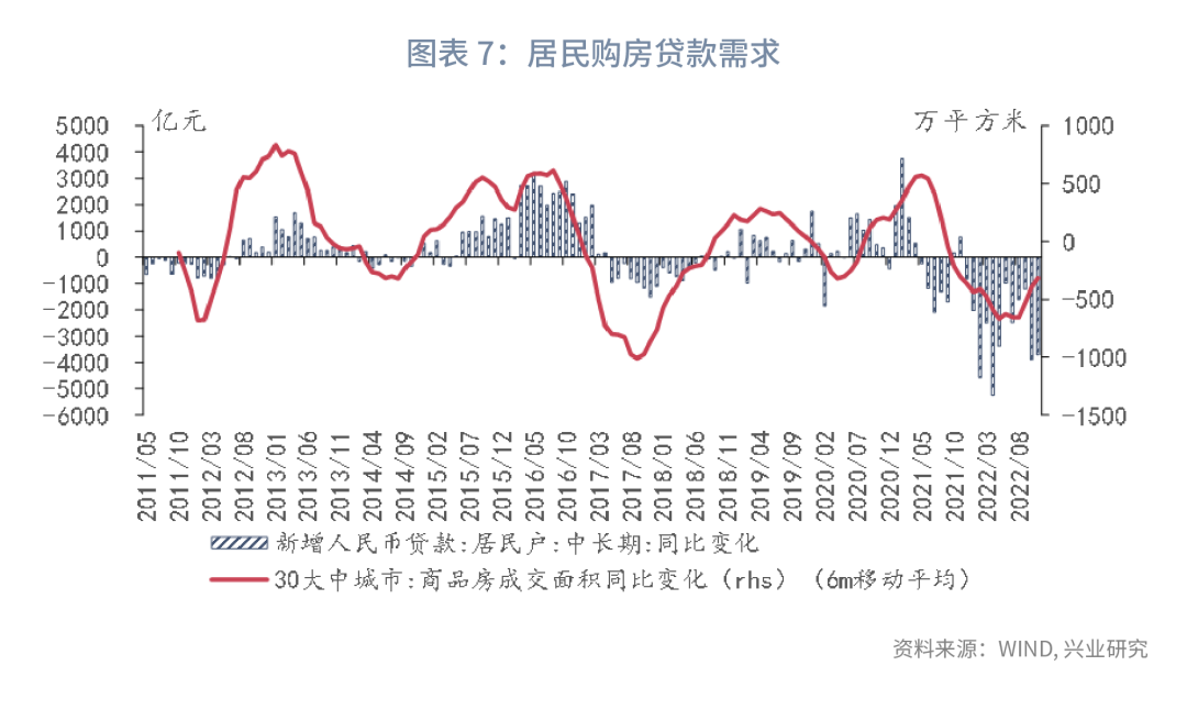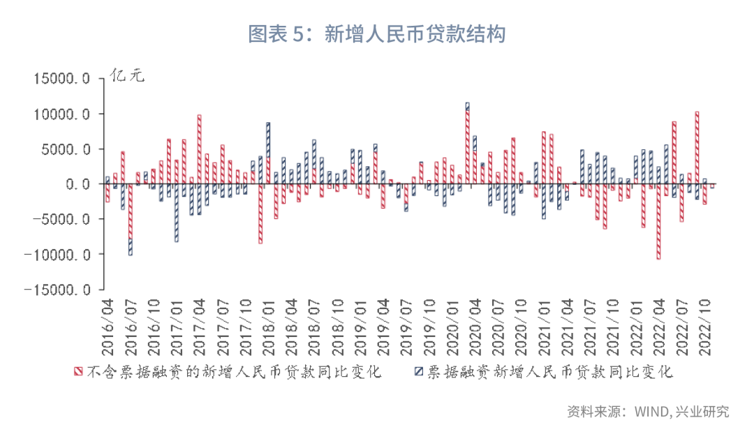从居民贷款来看,由于疫情多地散发,11月房地产销售同比跌幅扩大,且居民消费活动受到影响,导致新增居民短期、中长期贷款同比分别少增992亿元、3718亿元。
