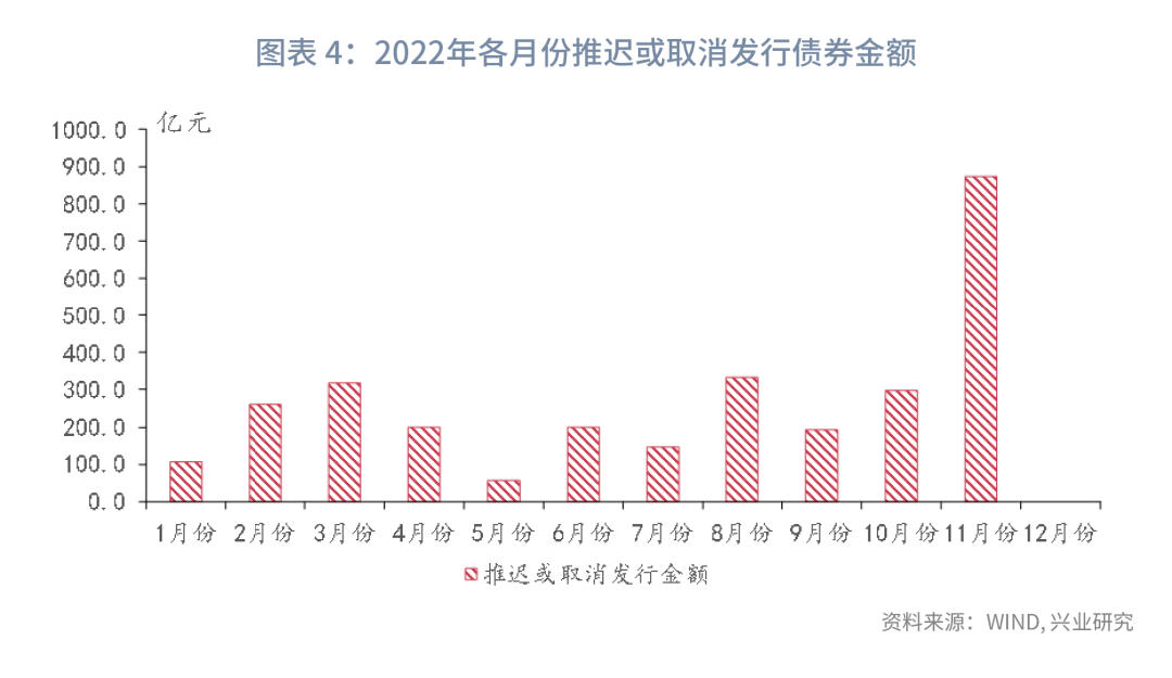 11月新增社会融资规模1.99万亿,同比少增6083亿元,其中居民贷款以及企业债券融资是主要的拖累项。11月企业债券发行利率走高、信用利差走阔导致企业通过债券融资的热情减弱,11月推迟或取消发行的债券金额远超今年其他月份。居民贷款、企业债券融资同比分别少增4710亿元、3410亿元。11月政府债券规模较10月有所反弹,录得6520亿元,同比少增1638亿元。