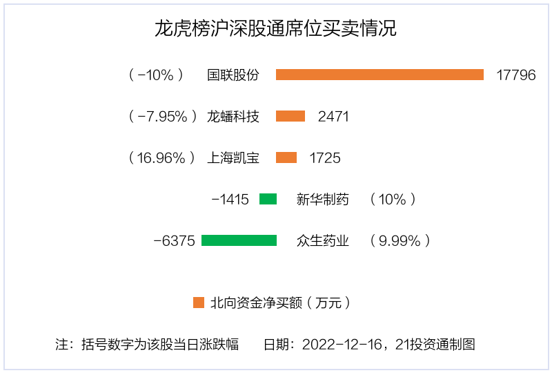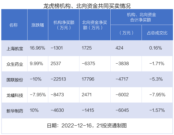 值得注意的是,机构和北向资金共同净卖出了新华制药;在国联股份、龙蟠科技、上海凯宝、众生药业上出现分歧。