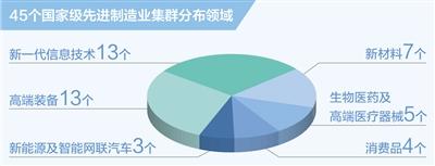 国家级集群成为引领带动重点行业和领域创新发展的重要力量。45个国家级集群中,新一代信息技术领域13个、高端装备领域13个、新材料领域7个、生物医药及高端医疗器械领域5个、消费品领域4个、新能源及智能网联汽车领域3个,覆盖了制造强国建设重点领域。