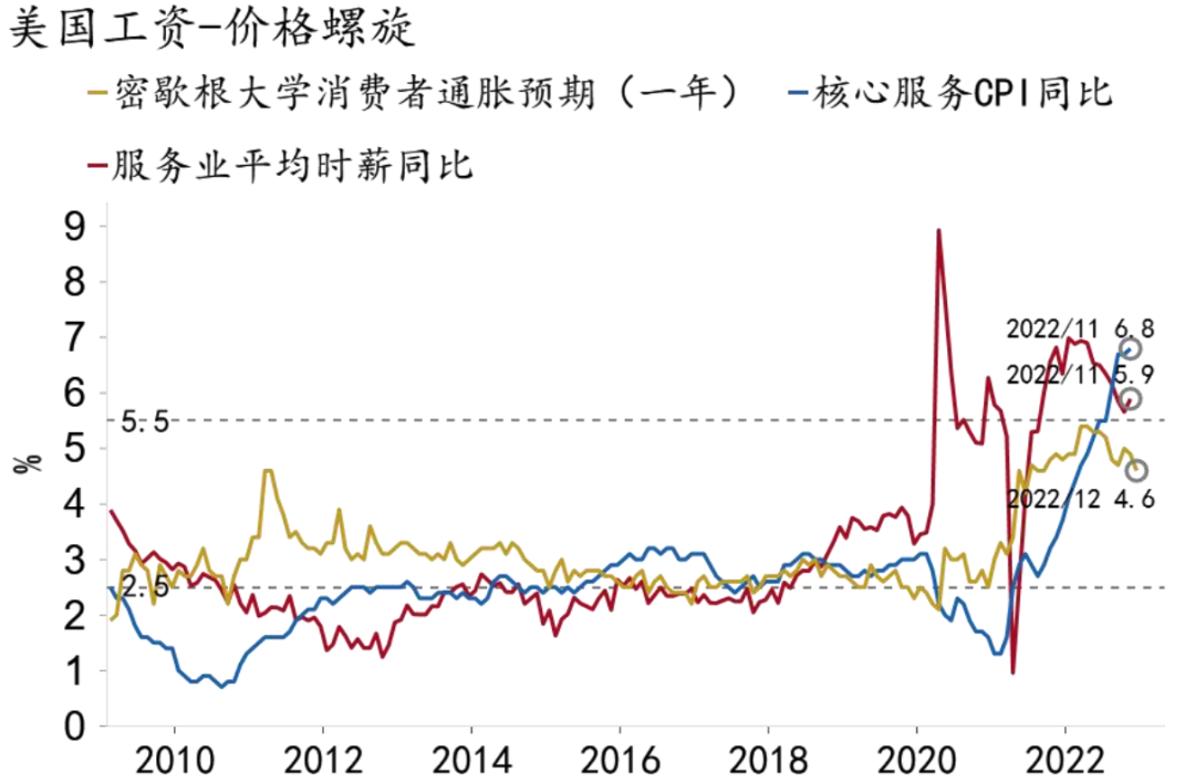 部分服务分项环比动能仍然强劲,服务业平均时薪环比增速亦在走强,这与美国强劲的用工需求相呼应,指向服务通胀内生动能仍强。随着美国经济内生动能趋弱,劳动力市场大概率将相应转冷,服务通胀回落的斜率和广度或相应加大。