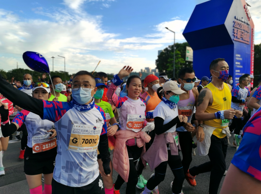 12月18日8时,2022年南山半马在深圳人才公园东门开跑。南山区委副书记、区长黄湘岳、南山区全民健身推广大使林丹作为领跑嘉宾一起领跑,为赛事揭幕同样作为南山区全民健身推广大使的谢杏芳则为本次赛事提供志愿服务为选手加油助威。