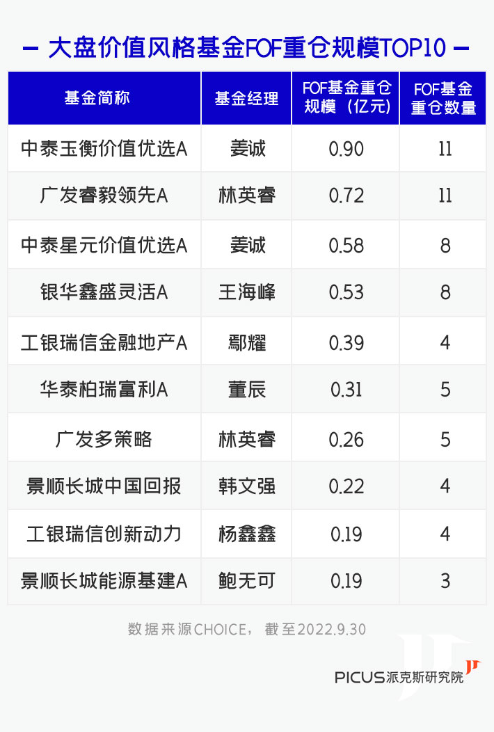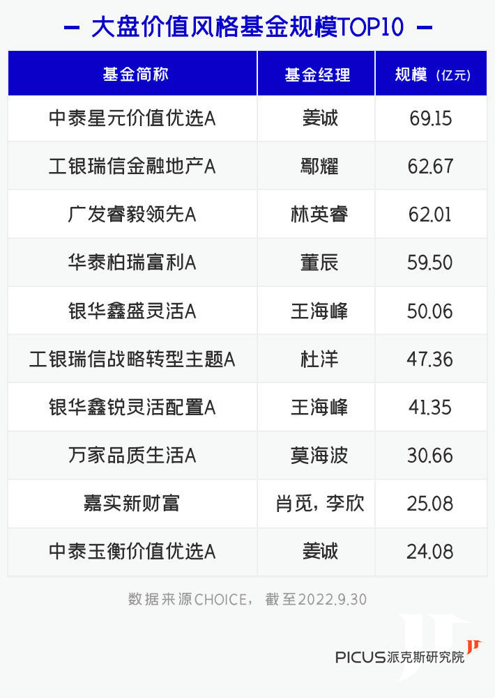 目前市场中规模最大的大盘价值风格基金是姜诚管理的中泰星元价值优选A,规模约70亿。