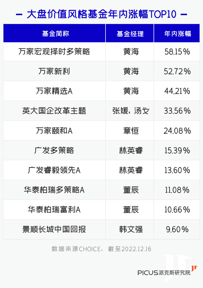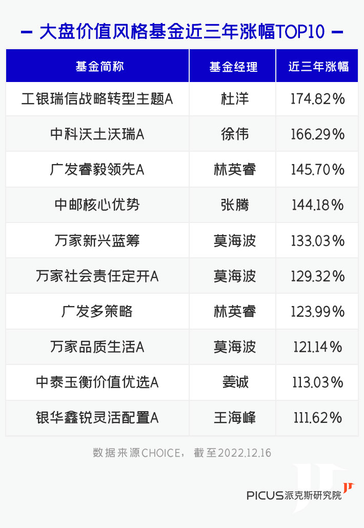 站在岁末年初,考虑到大盘价值风格有望继续领跑,我们特别制作了关于“大盘价值”风格的5张榜单,帮助大家找到适合自己的价值风格基金经理。