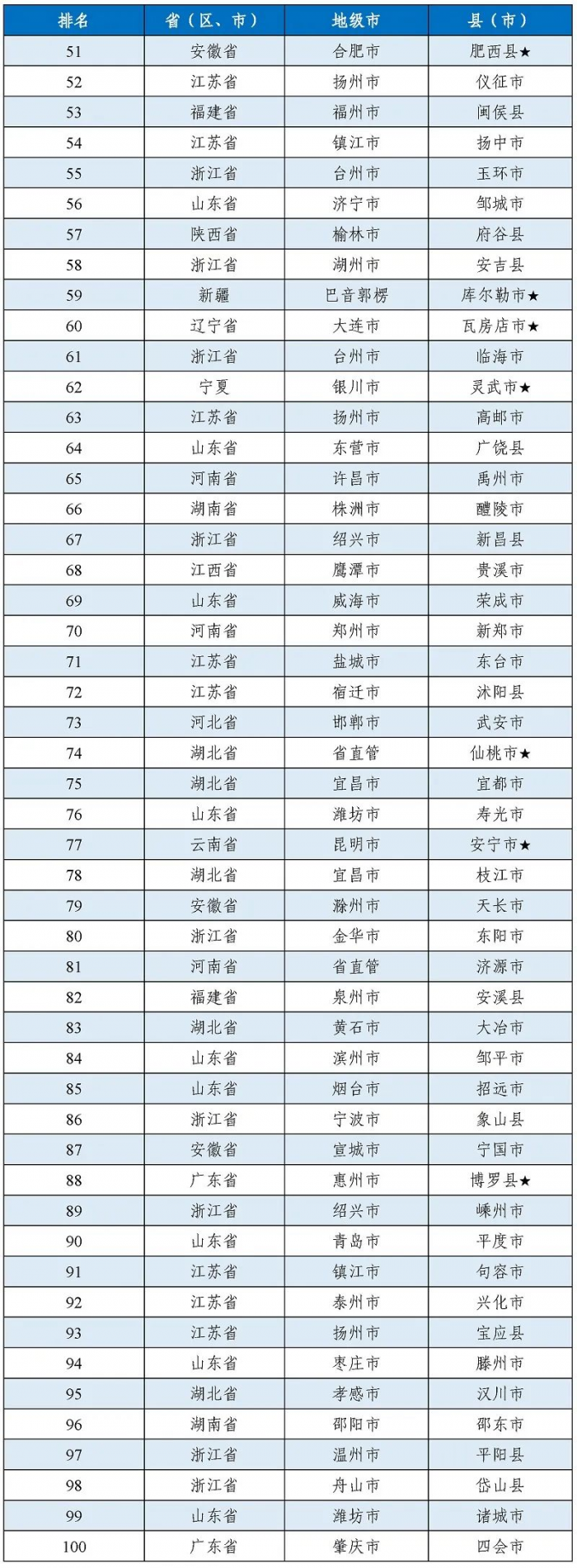 具体来看,百强县(市)榜单上江苏、浙江双雄割据,分别占据23席和25席,两省合计占总数量的48%。