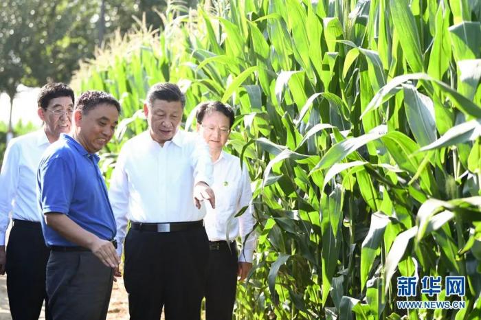 2020年7月22日至24日,习近平在吉林省考察。这是7月22日下午,在四平市梨树县国家百万亩绿色食品原料(玉米)标准化生产基地核心示范区地块,习近平走进玉米地,了解农业科技研发利用、黑土地保护情况。新华社记者燕雁摄