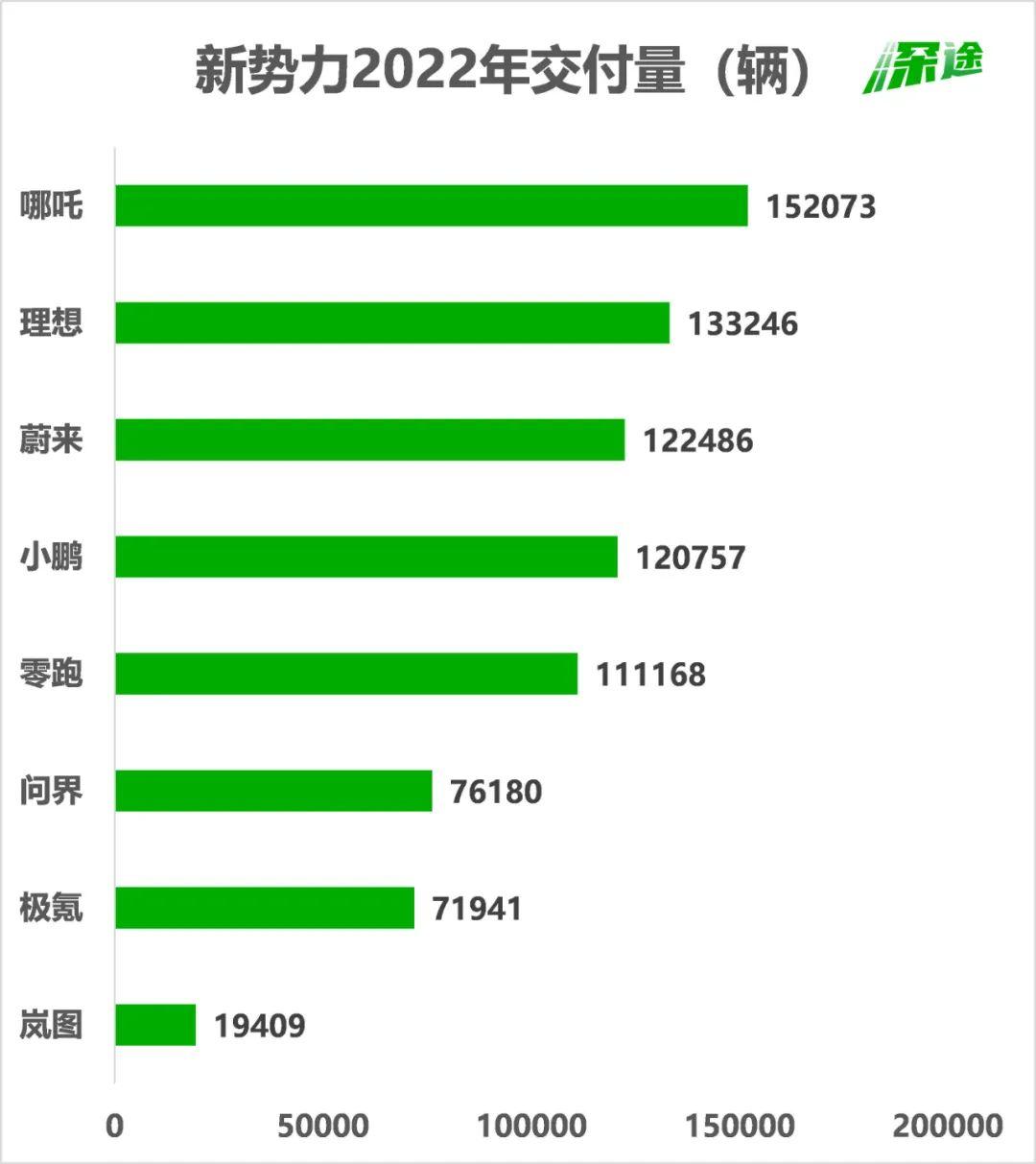 蔚来、理想、小鹏这三兄弟的2022年成绩,本质上没有太大区别,都是十二三万的规模体量——理想13.3万、蔚来12.2万、小鹏12.1万。
