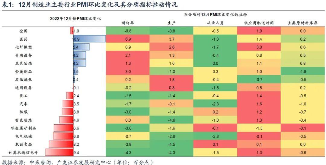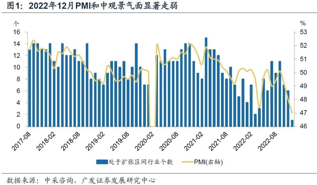 12月制造业PMI环比回落1个点至47,7-11月制造业PMI分别为49.0、49.4、50.1、49.2、48.0;制造业PMI在经历了8-9月的低位企稳后,先后由于区域疫情反复和第一轮感染高峰期的扰动,10-12月连续3个月呈现走弱趋势。
