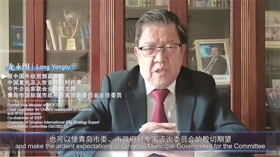 原中国外经贸部副部长、中国复关及入世首席谈判代表、青岛市国际城市战略专家咨询委员会主任委员龙永图寄语。