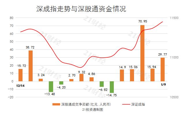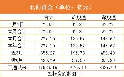 北向资金继续扫货,全天净买入77亿元,其中沪股通净买入47.23亿元,深股通净买入29.77亿元。北向资金已连续4个交易日大幅净买入,累计流入净额高达283.63亿元。