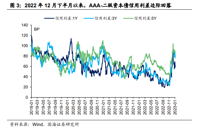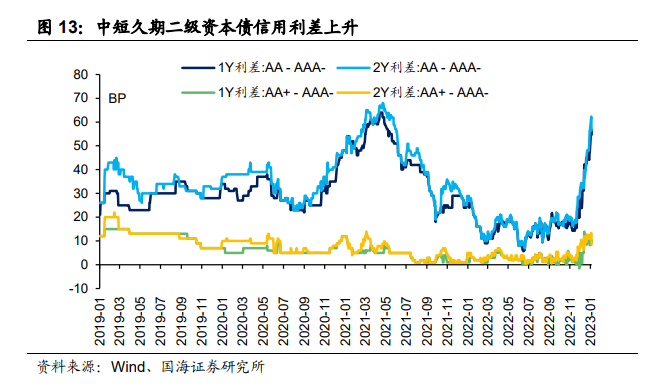 长期来看,2023年受整体信贷环境偏弱的影响,二级资本债供给冲击无需担忧。但我们需要考虑若《巴塞尔协议III》本土版监管落地,对二级资本债信用利差中枢长期抬升的作用。