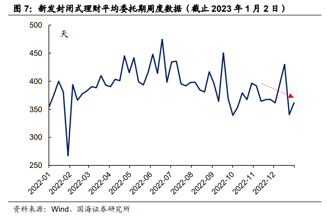 从我们跟踪的理财发行情况来看,2022年11月以来,新发封闭式理财平均委托期的确呈总体下行势头,反映出银行理财发行方“降久期、降波动”的长期趋势。
