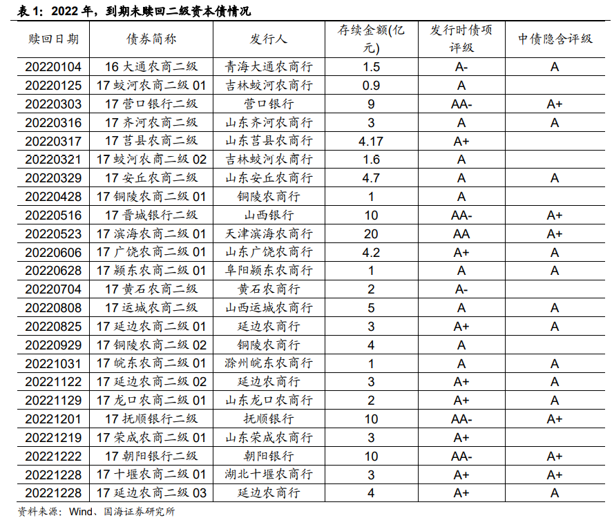 (4)若2022年至今某省、直辖市银行发生过二级资本债不赎回事件,则该区域二级资本债中债隐含评级要求提升至AA+,其他区域隐含评级要求可放宽至AA。